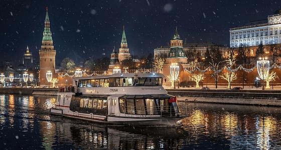 Новогодние каникулы остались позади, а электросудно-ресторан «Стрельна» продолжает работать в привычном режиме и ежедневно отправляется в прогулки по Москве-реке.
