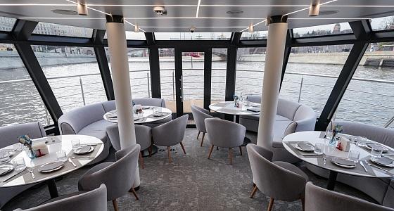 На борту электрохода «Стрельна» открыт полноценный ресторан, где каждый рейс превращае