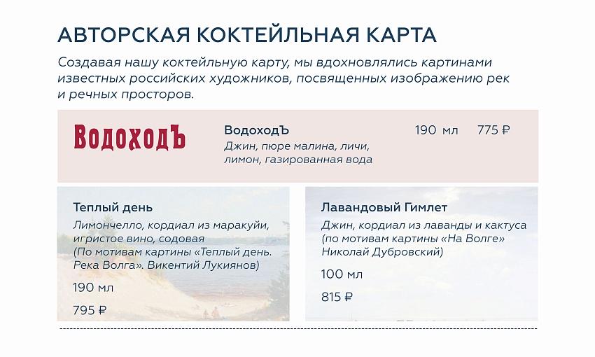 «ВодоходЪ» — крупнейшая судоходная компания России и туристический оператор. Мы создаём сотни маршрутов речных прогулок и круизов по самым живописным местам страны. И именно на основе этого опыта появилось меню, которое вы найдете на борту «Стрельны».